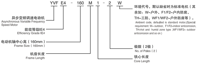 YVFE4系列高效变频调速三相异步电动机型号说明